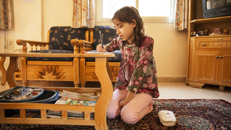Layla continues finding relief in her daily rituals. She fixes her own bed each morning and immerse herself in English stories. “I would like to become an English teacher when I grow up,” she dreams. Every night, Layla comforts her younger sisters in reading bedtime stories, while trying to keep her voice louder than the echoes of distant airstrikes.